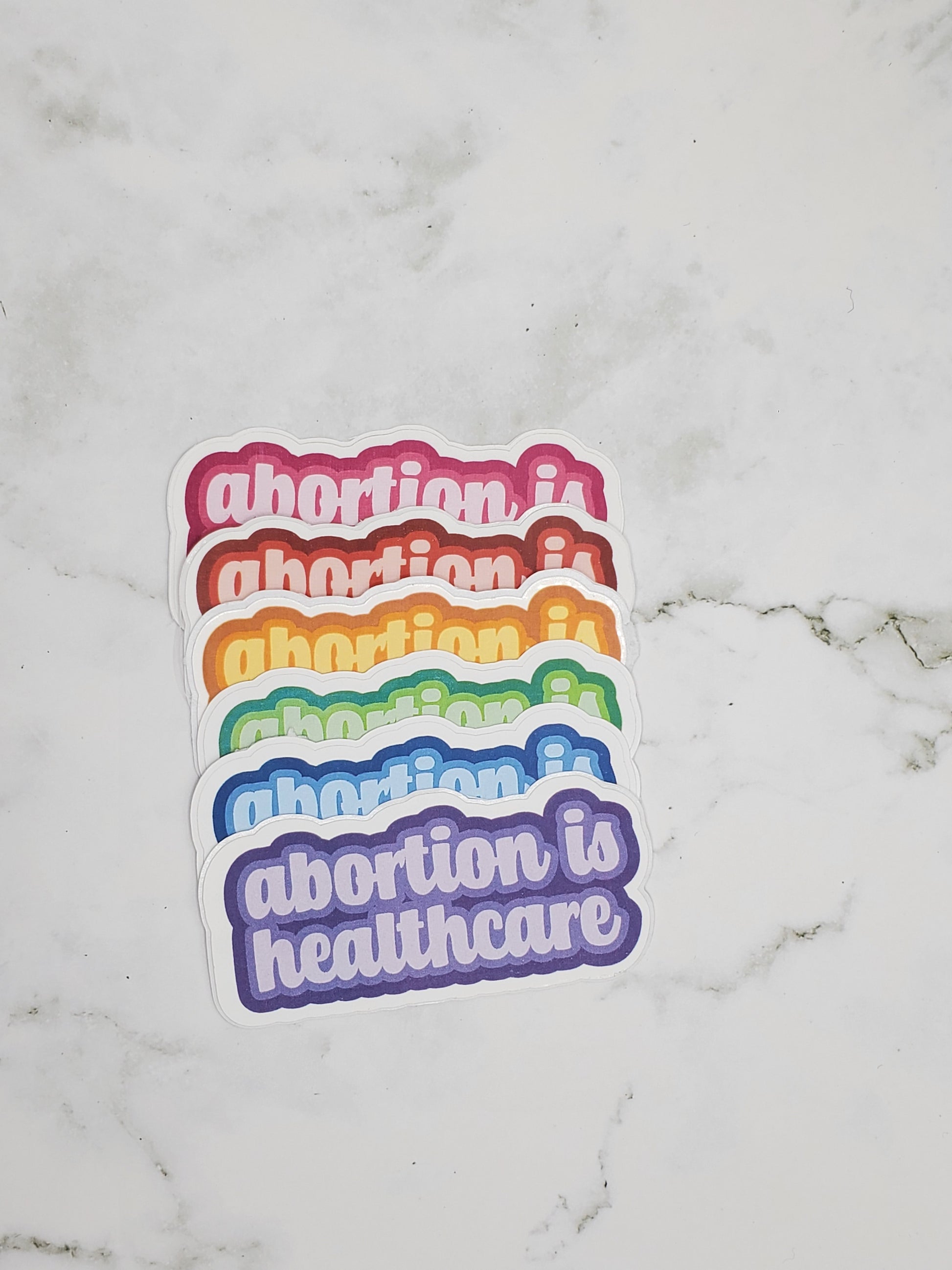 Abortion is healthcare sticker available in 6 colors. These stickers are perfect for water bottles, laptops and anywhere you want really.