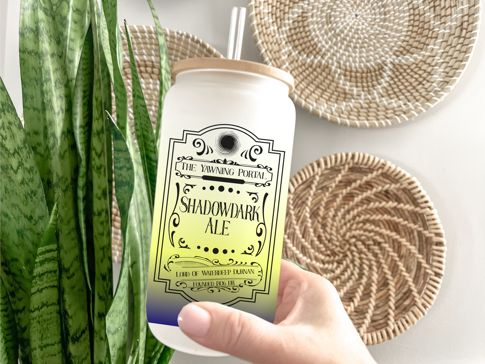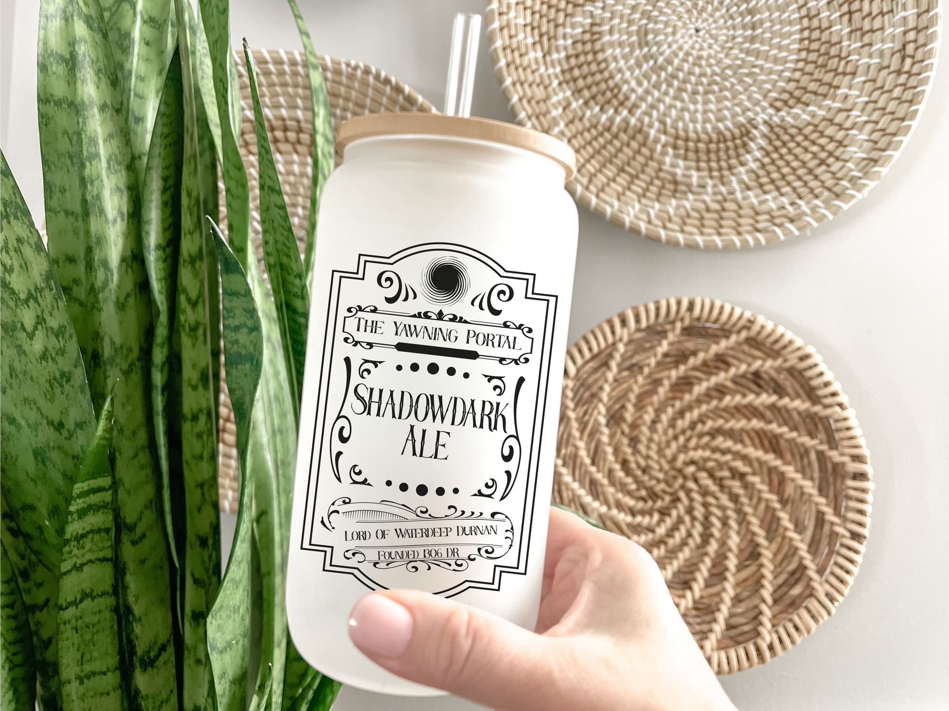 Transport yourself to the bustling city of Waterdeep with our new 18oz frosted glass can cups - the perfect way to enjoy your favorite beverages while exploring the depths of the Undermountain!