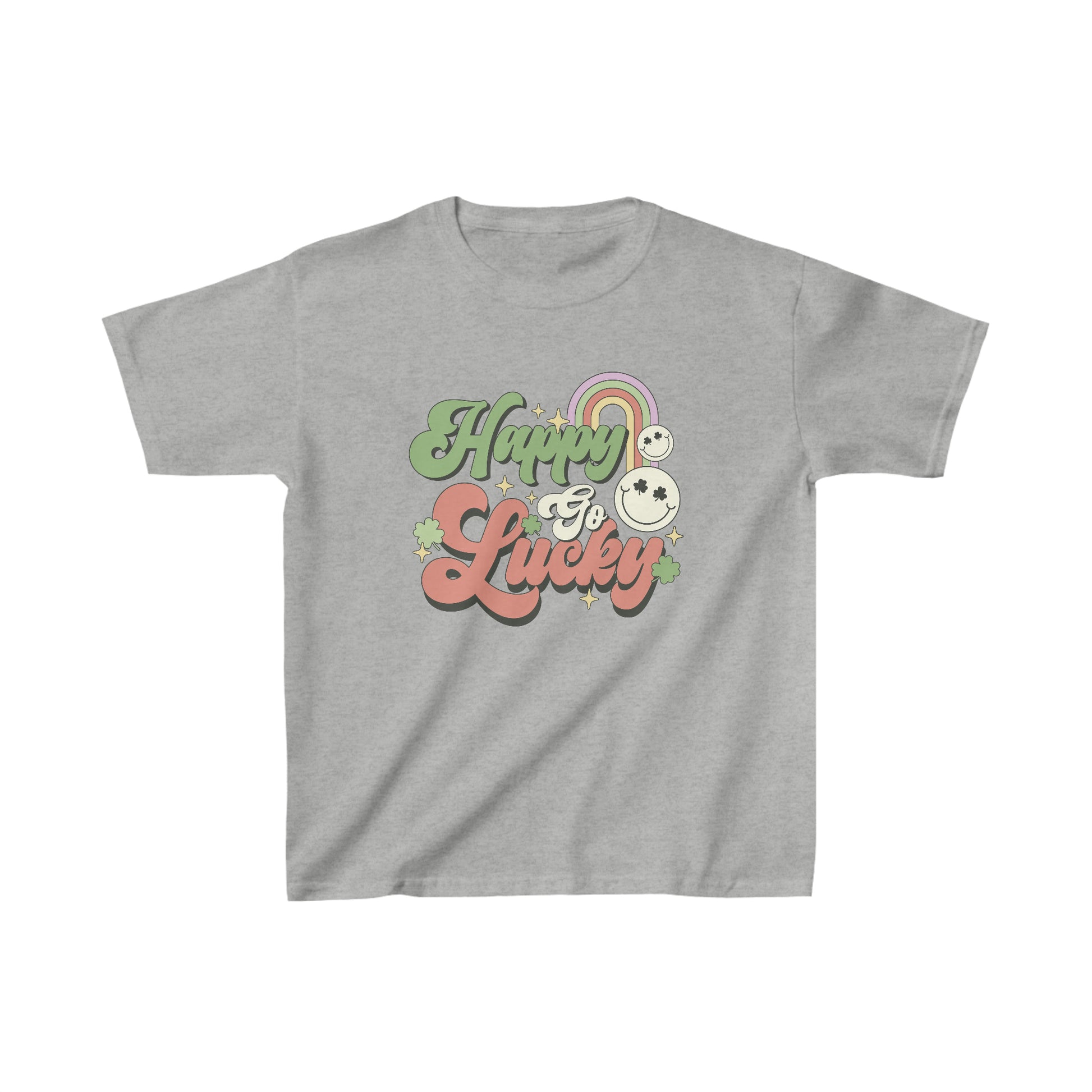 Happy go lucky graphic tee shirt in a varity of colors. This shirt is sure to be a hit all month long. It's soft and pairs well with jeans! Comes in all sizes so you can match as a family.