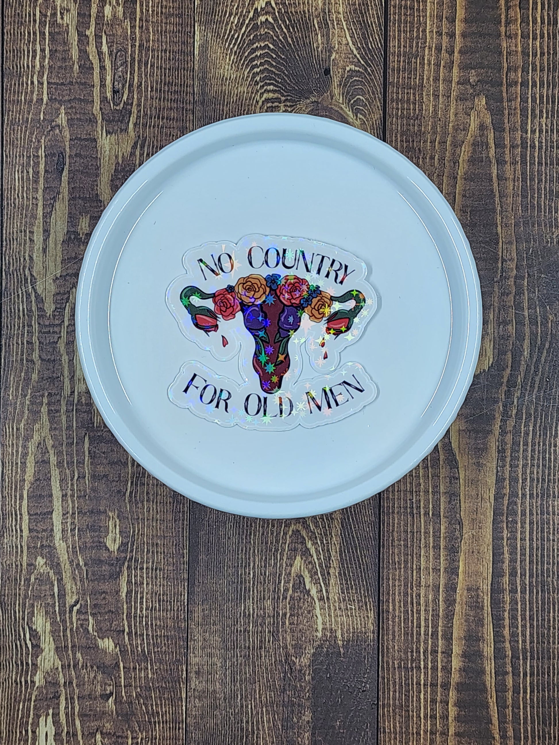 Stand up for reproductive rights with our feminist and pro-choice sticker, featuring a beautiful floral uterus and the bold words "no country for old men." This powerful design is perfect for expressing your support for women's health and autonomy.