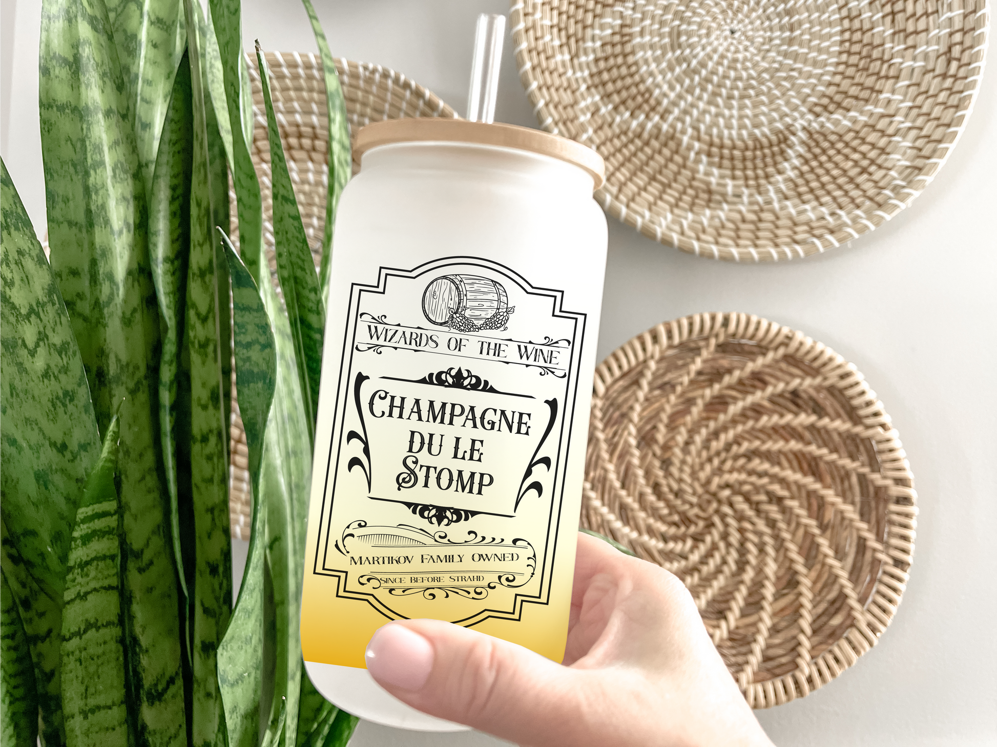 Finally, make your way to the renowned "Wizards of the Wine" winery, where they produce all the wine for Barovia. Their top-of-the-line "Champagne du le Stomp" is a precious commodity, offering a brief respite from the darkness that looms over the land. Savor this exquisite wine in a label only or yellow gold gradient cup, adorned with a unique apothecary-style label.