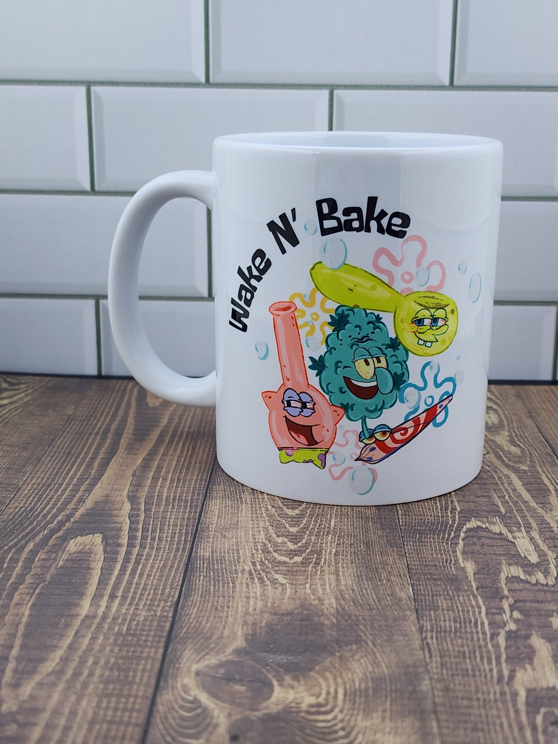 Wake N' Bake with the Bikini Bottom Crew! This 11oz coffee mug is a great vessel for your morning magic bean water. This item ships from Arizona with in 2 business days.