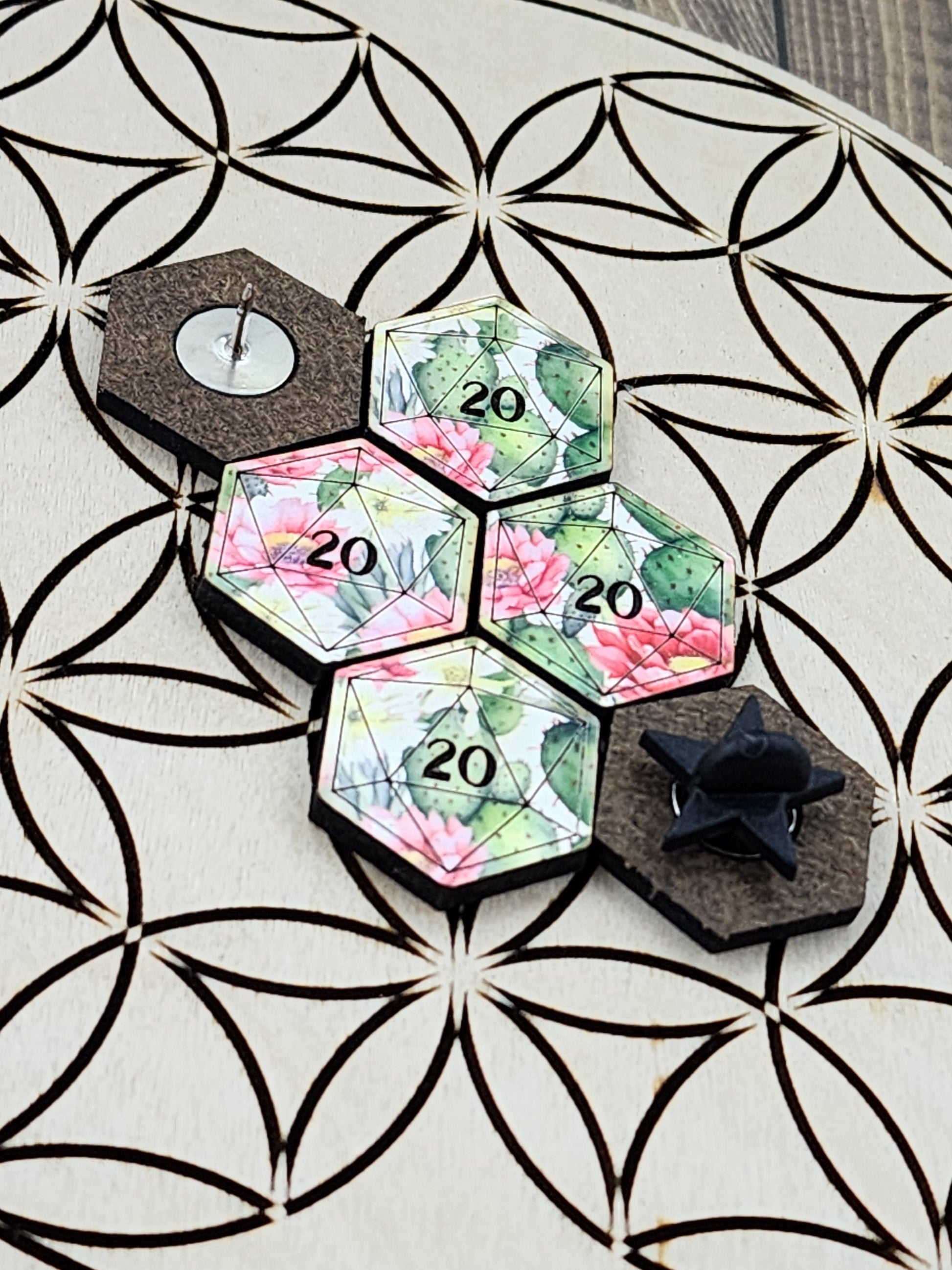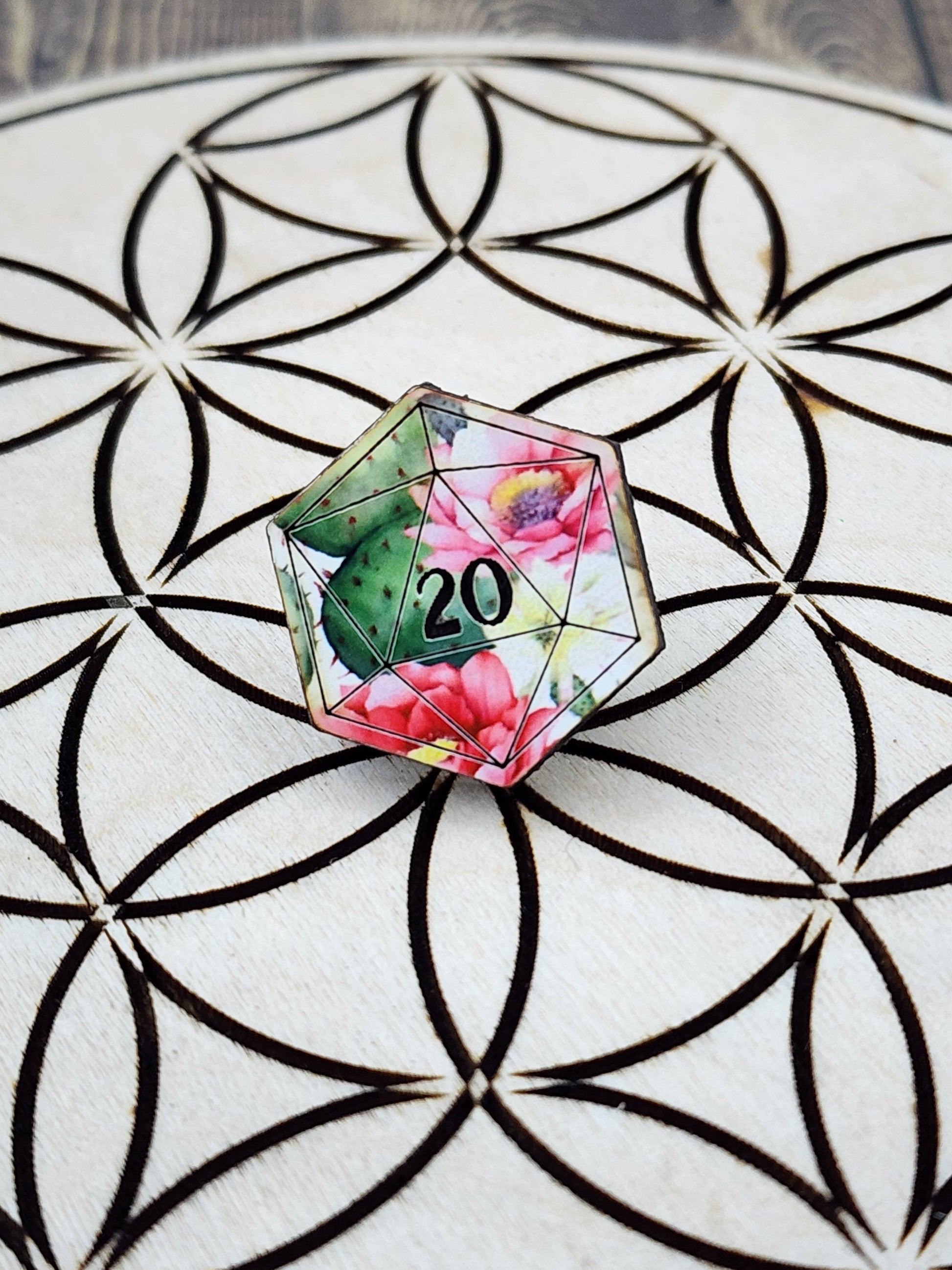 Level-up your wardrobe with this unique 1 inch Watercolor Cactus Succulent D20 pin! Sublimated with watercolor succulents and cacti, it's the perfect way to show off your geeky style with undeniable class. Complete with a star rubber clutch, this handmade piece of art will make you the envy of every d20 rolling party! Each piece is unique.